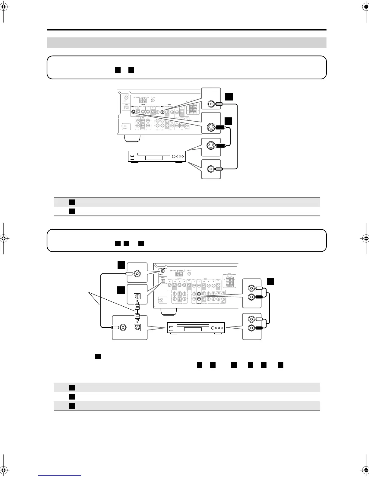 •To enjoy Dolby and DTS listening modes, use connection or . (Use and or and for recording.)