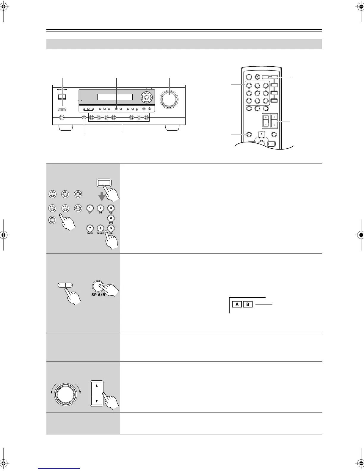 Use the SPEAKERS [A] and [B] buttons on the AV receiver or the [SP A/B]