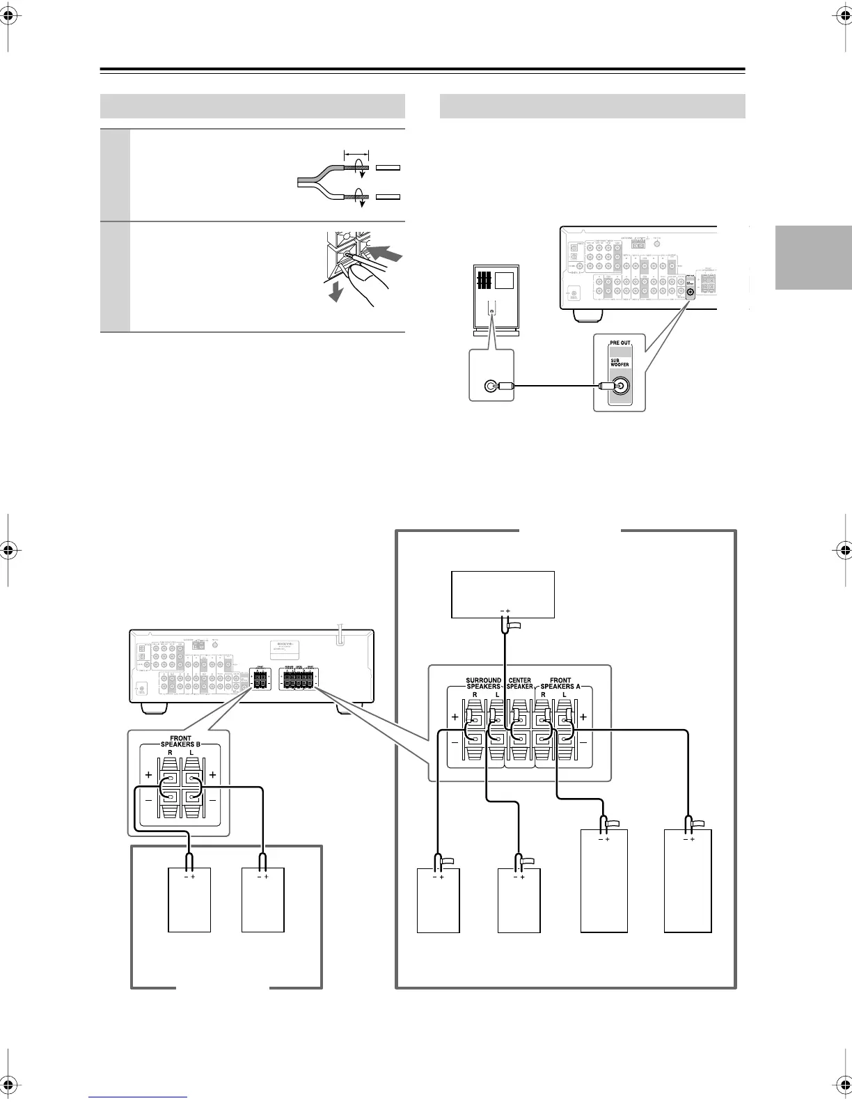 The following illustration shows which speaker should be connected to each pair of terminals.