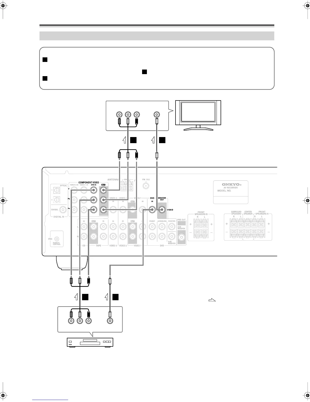 VIDEO DVD IN jacks. And connect the AV receiver’s COMPONENT VIDEO OUT jacks to your TV. This will