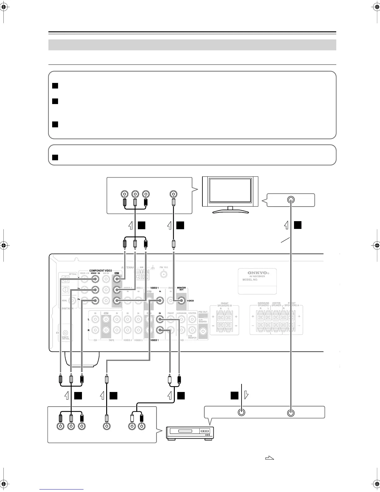 receiver’s COMPONENT VIDEO VIDEO 1 IN jacks, and connect the AV receiver’s COMPONENT VIDEO