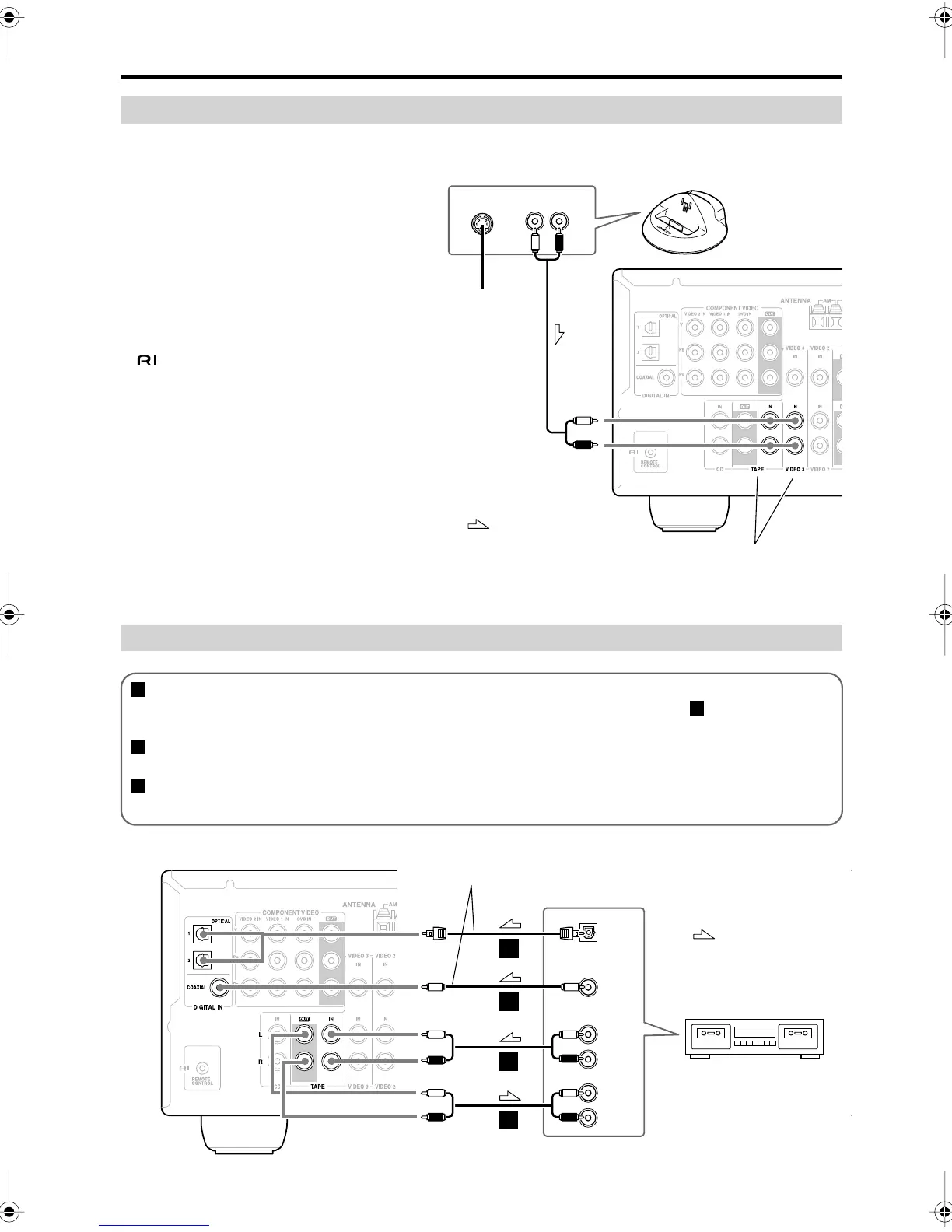 recorder’s audio output jacks to the AV receiver’s TAPE IN L/R jacks. With connection , you can play and