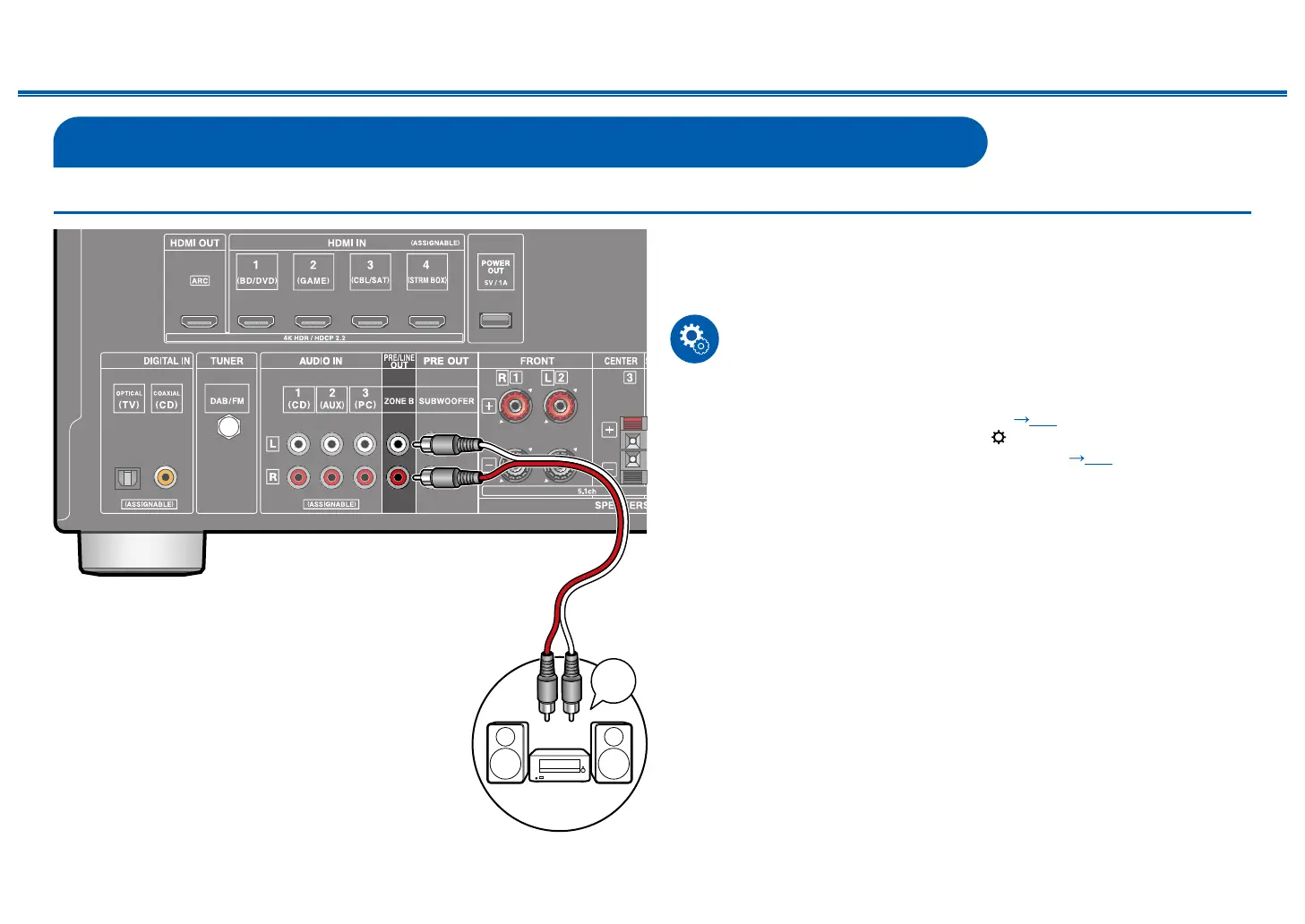 analog cable to connect the ZONE B PRE/LINE OUT jack of this unit and the