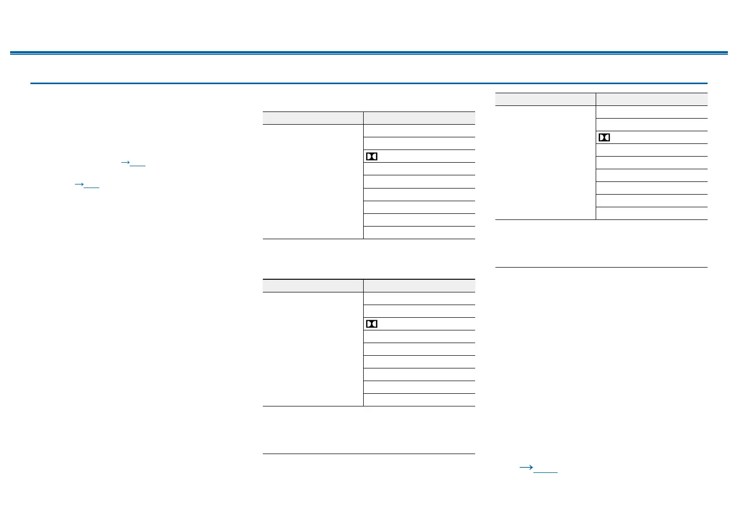 • List of listening modes selectable with the MUSIC