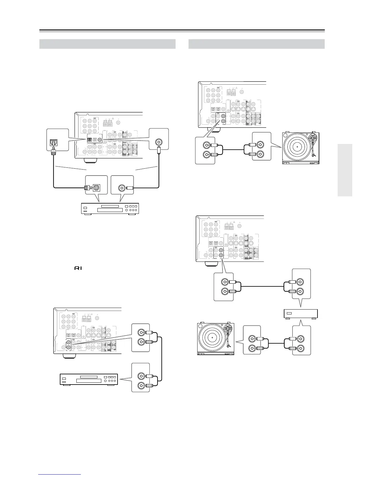 TX-SR501E’s L/R CD IN connectors to the analog audio
