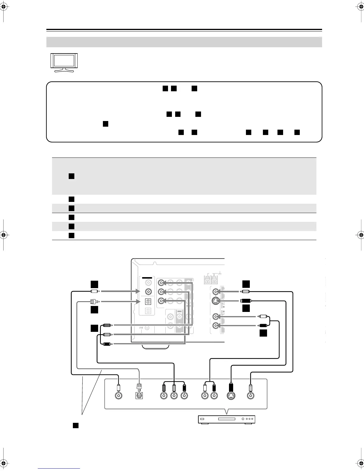 TX-SR505/TX-SR505E/TX-SR8550: You must connect the AV receiver to your TV via the same type of con-