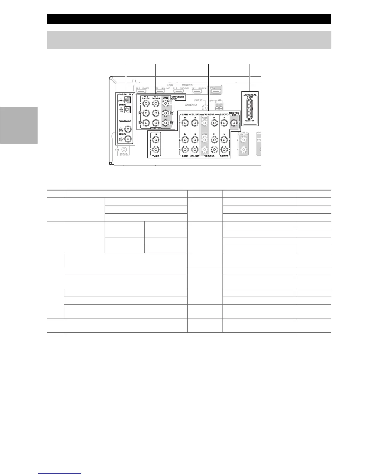 • With connection C, you can listen and record audio from the external components while you are in Zone 2. You can lis-