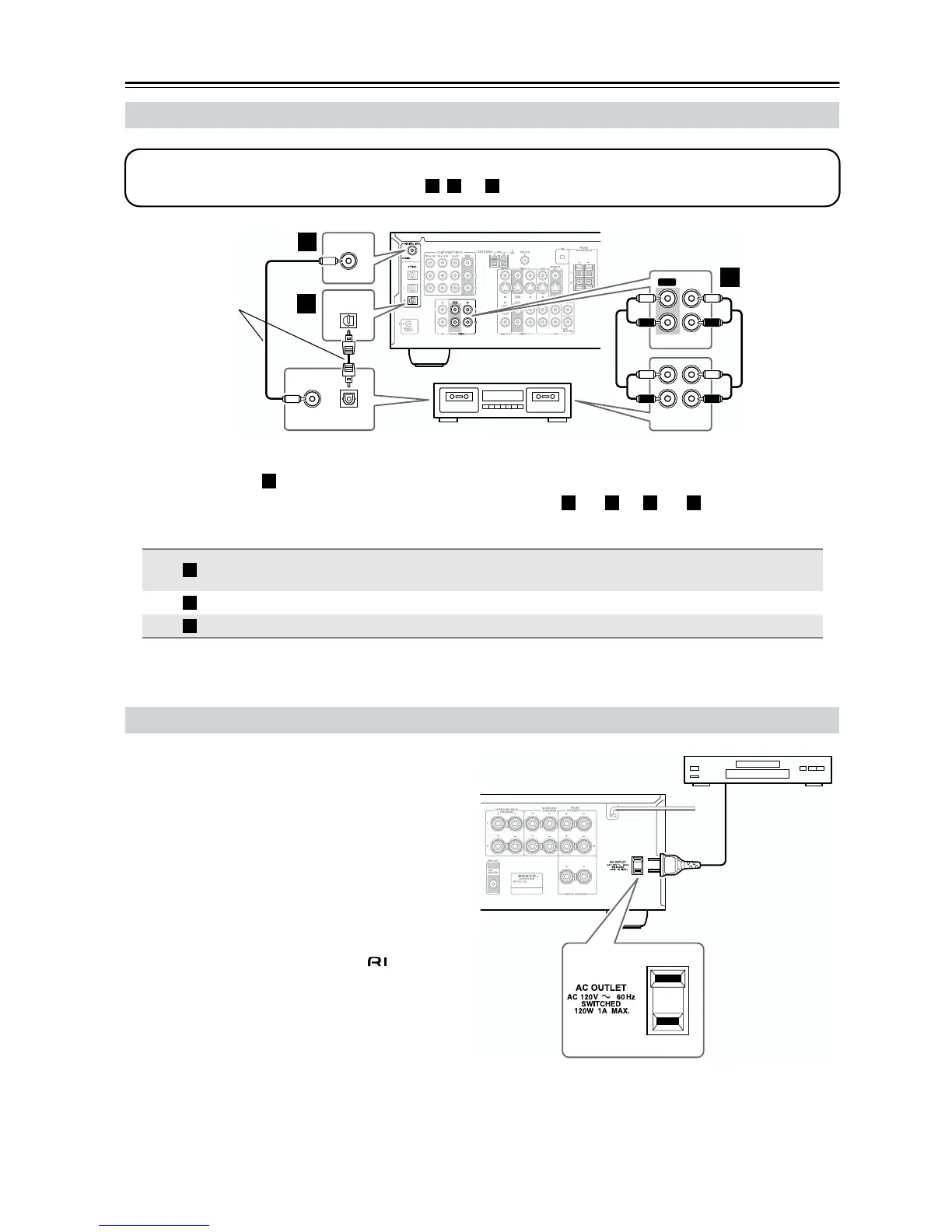 • To connect the recorder digitally (playback only), use connections and , or and .