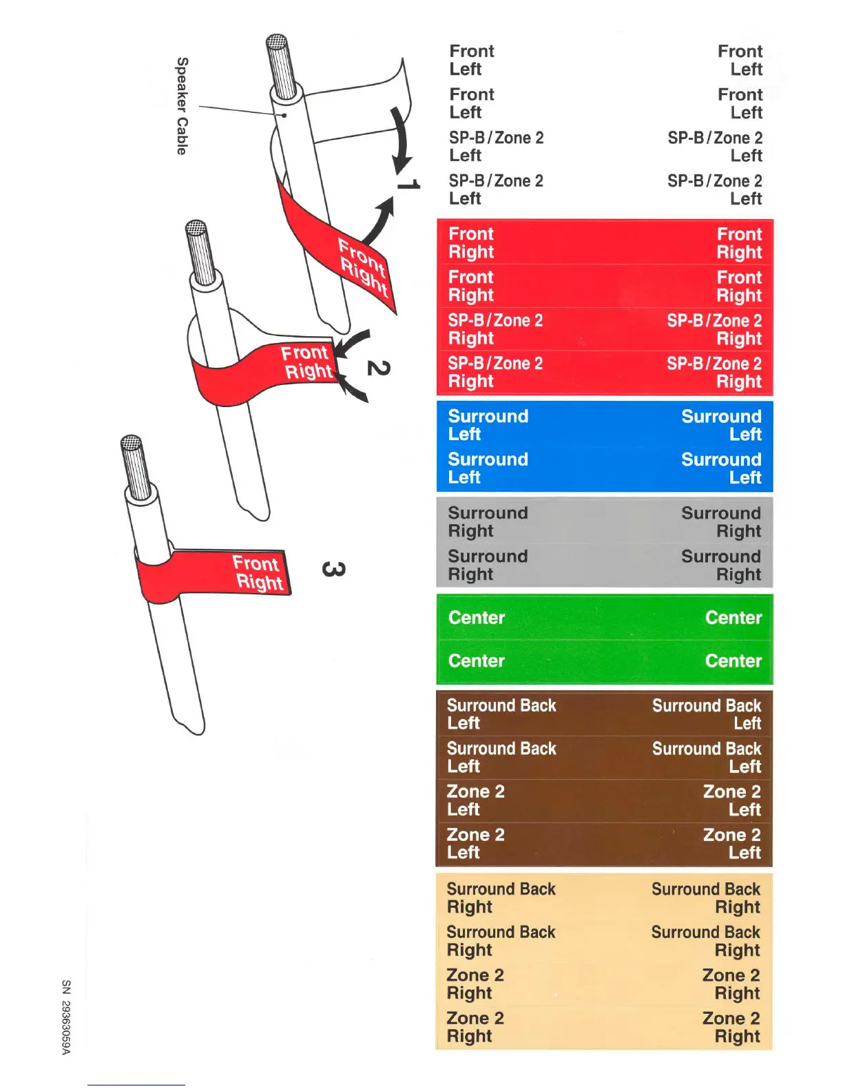 Onkyo TX-SR573 - Speaker Cable Identification; Color Coding for Speaker Wires