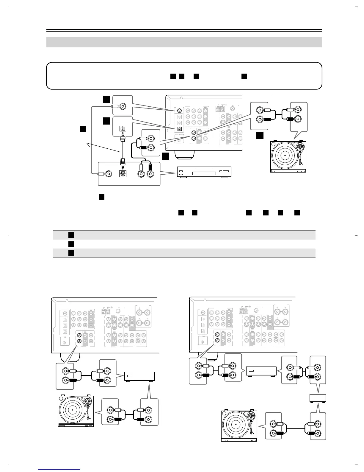 Choose a connection that matches your CD player ( , , or ). Use connection for a turntable with a built-in