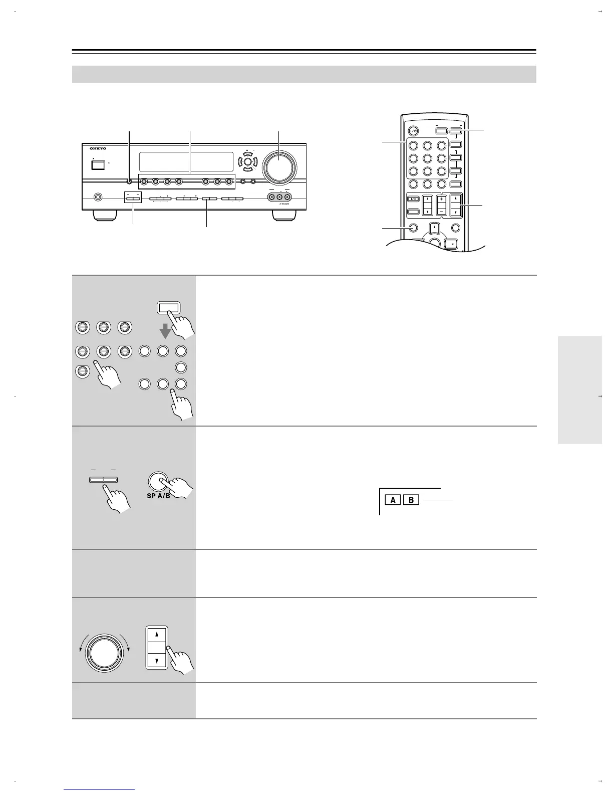 Pressing the remote controller’s [SP A/B] button cycles through the following settings: