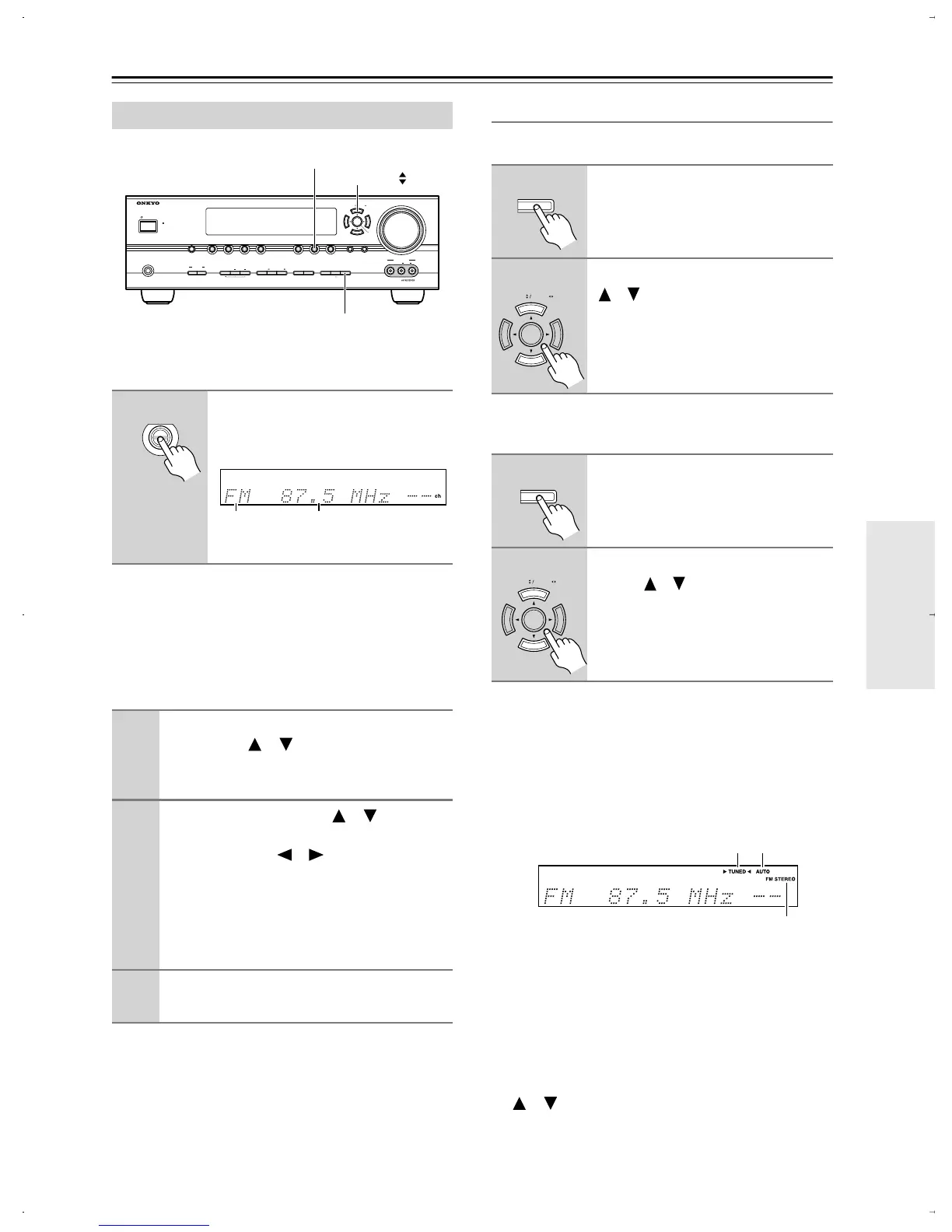 0.05 MHz steps for FM and 9 kHz (or 10 kHz) steps for