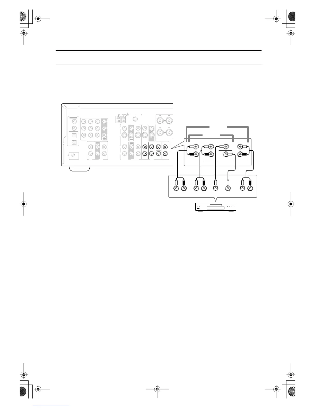 Use a multichannel analog audio cable, or several normal audio cables, to connect the AV receiver’s DVD IN FRONT
