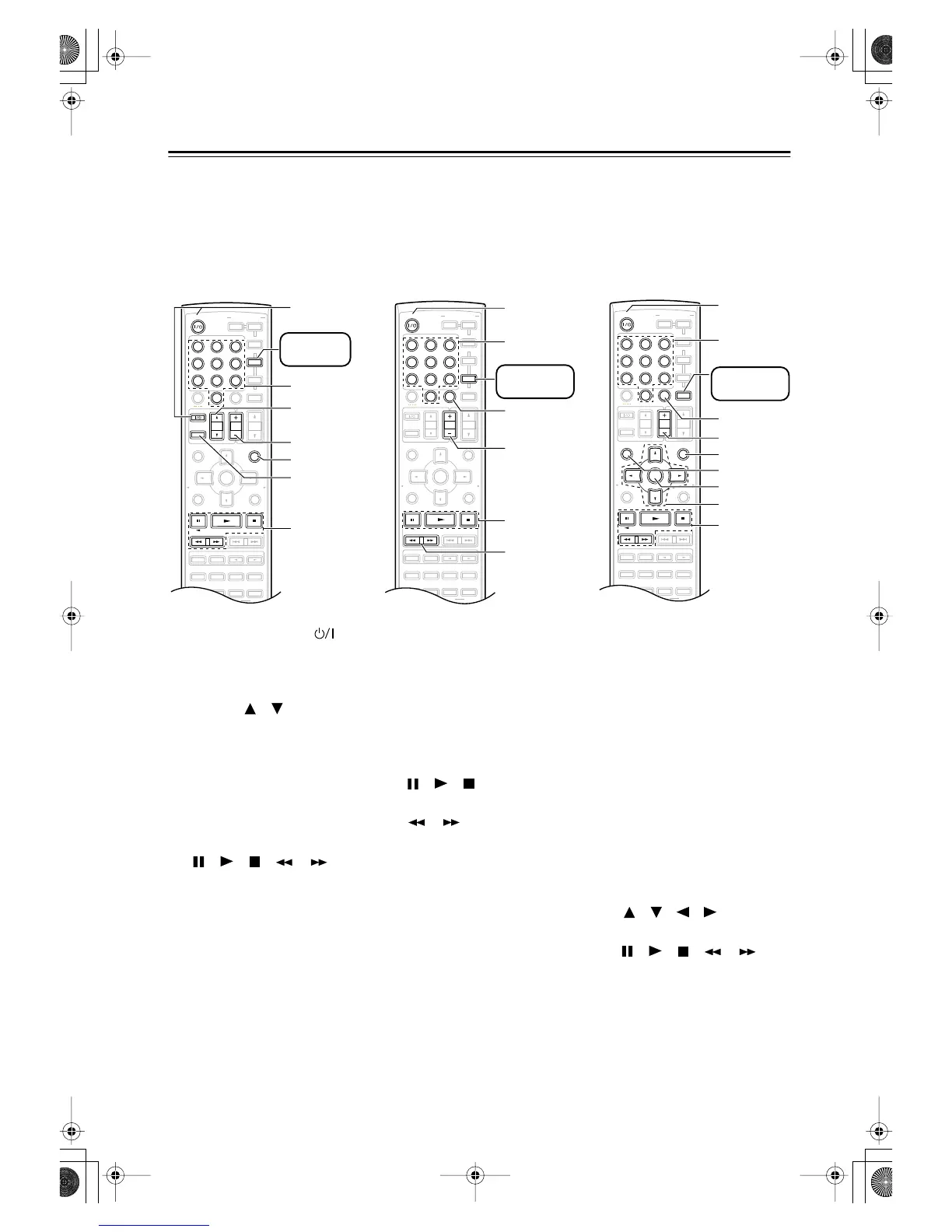 To control another component, point the remote controller at it and use the buttons explained below. (You must