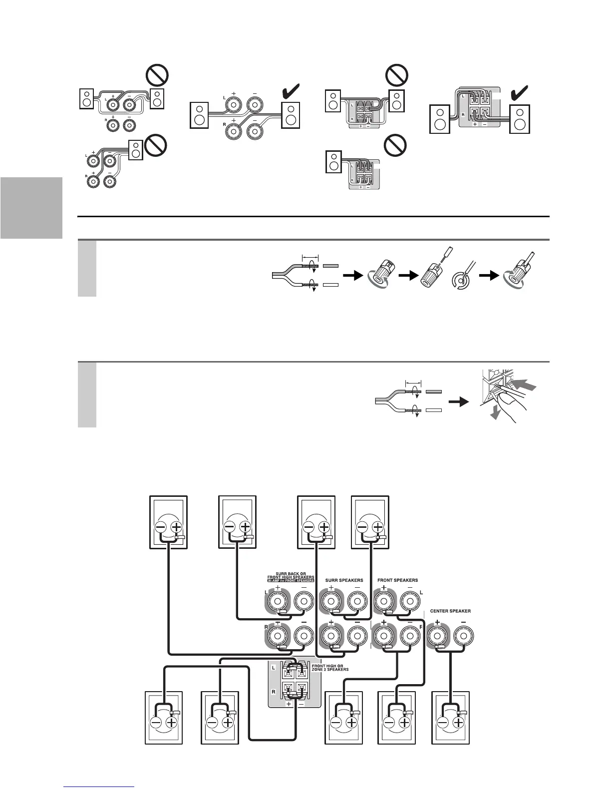 • Do not insert the speaker code directly into the center hole of the speaker terminal.
