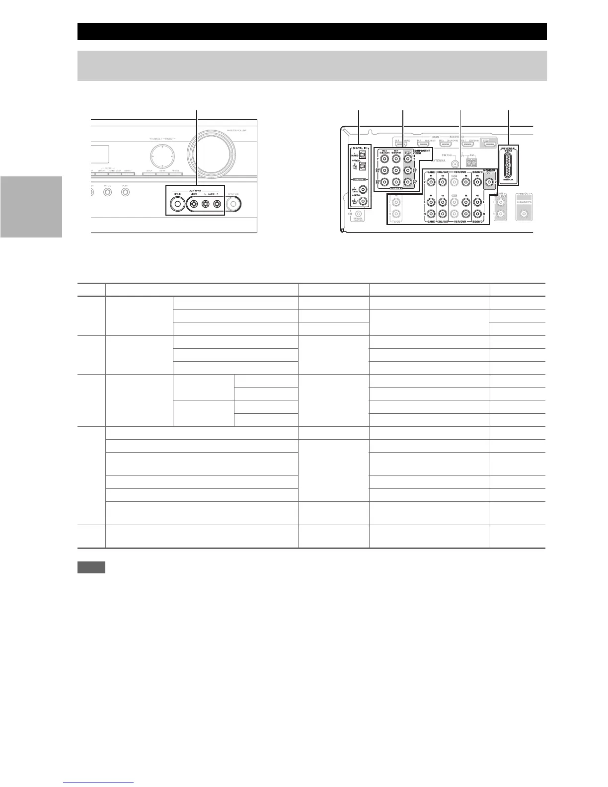 • With connection D, you can listen and record audio from the external components while you are in Zone 2. You can lis-