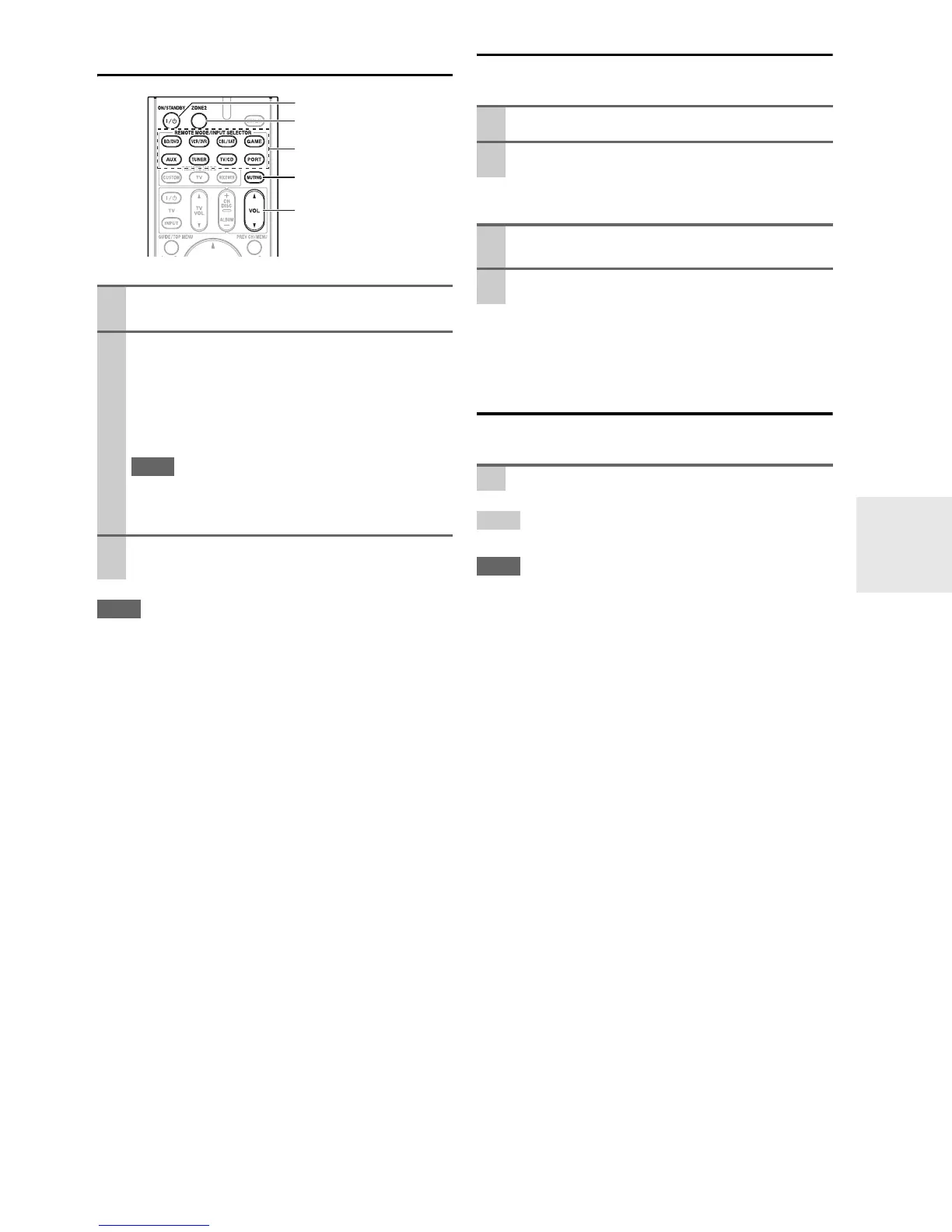 • To unmute, press ZONE2 followed by MUTING again.