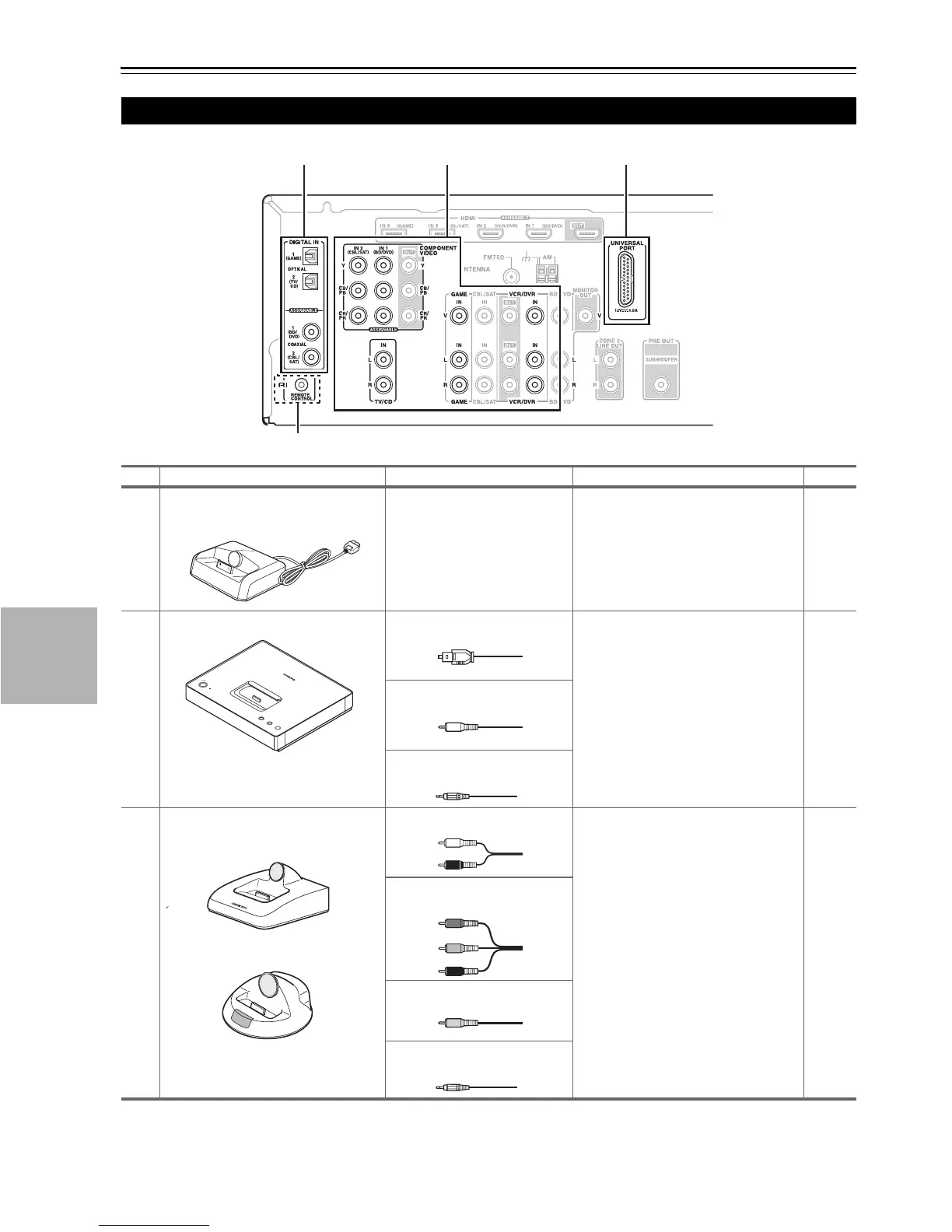 RI Dock Analog audio (RCA) • See the RI Dock’s instruction manual