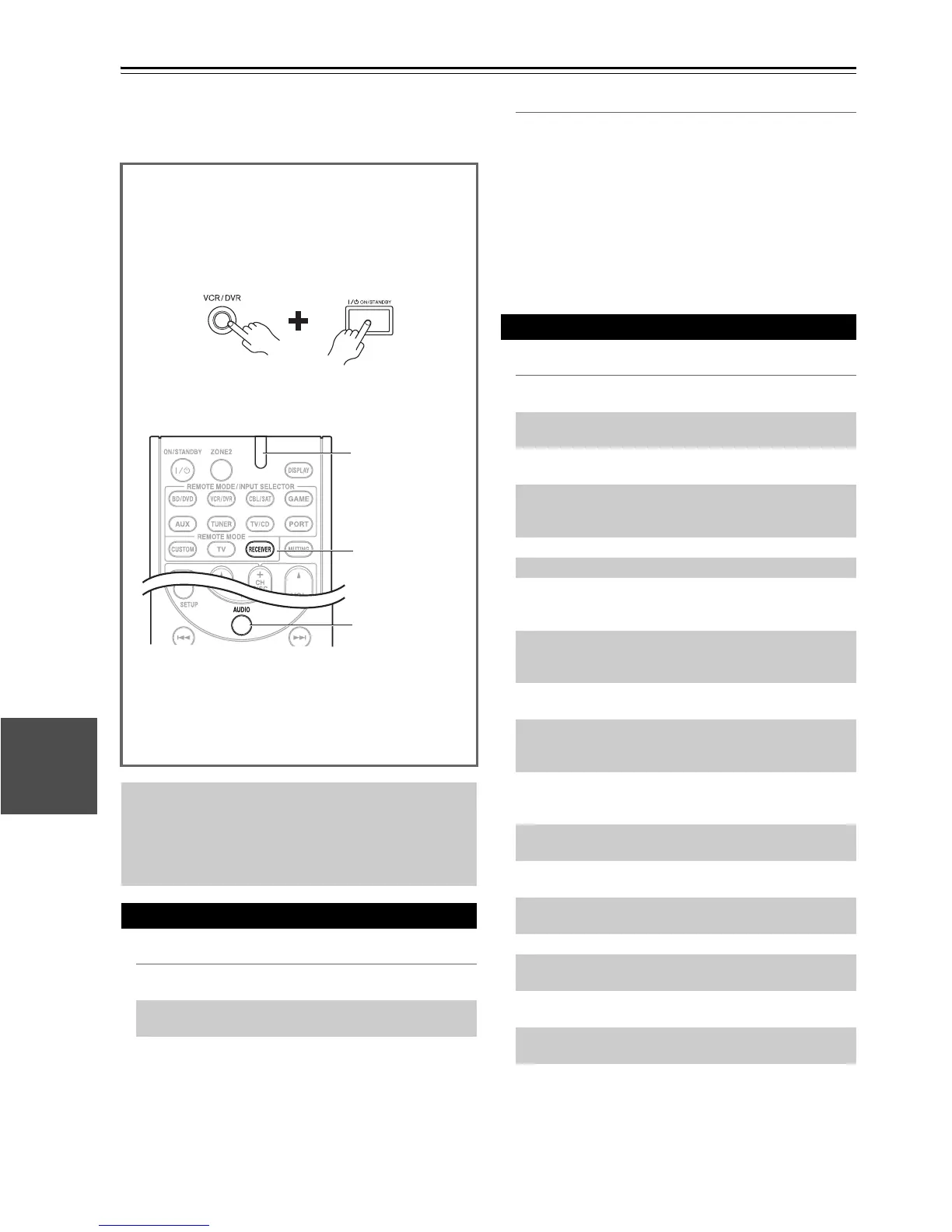 AUDIO until the remote indicator lights (about 3 sec-