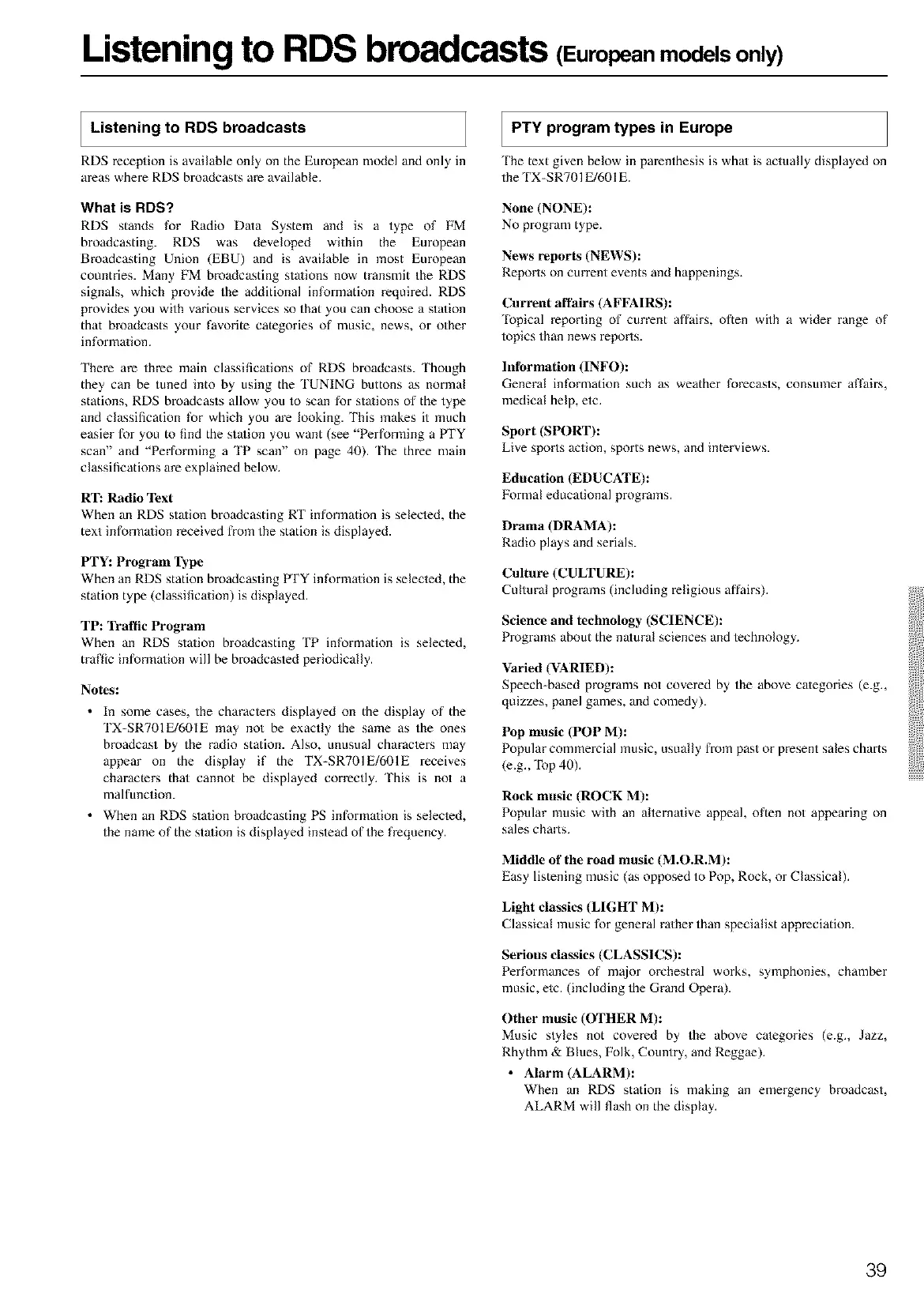 Listening to RDS broadcasts (Europeanmodels only)