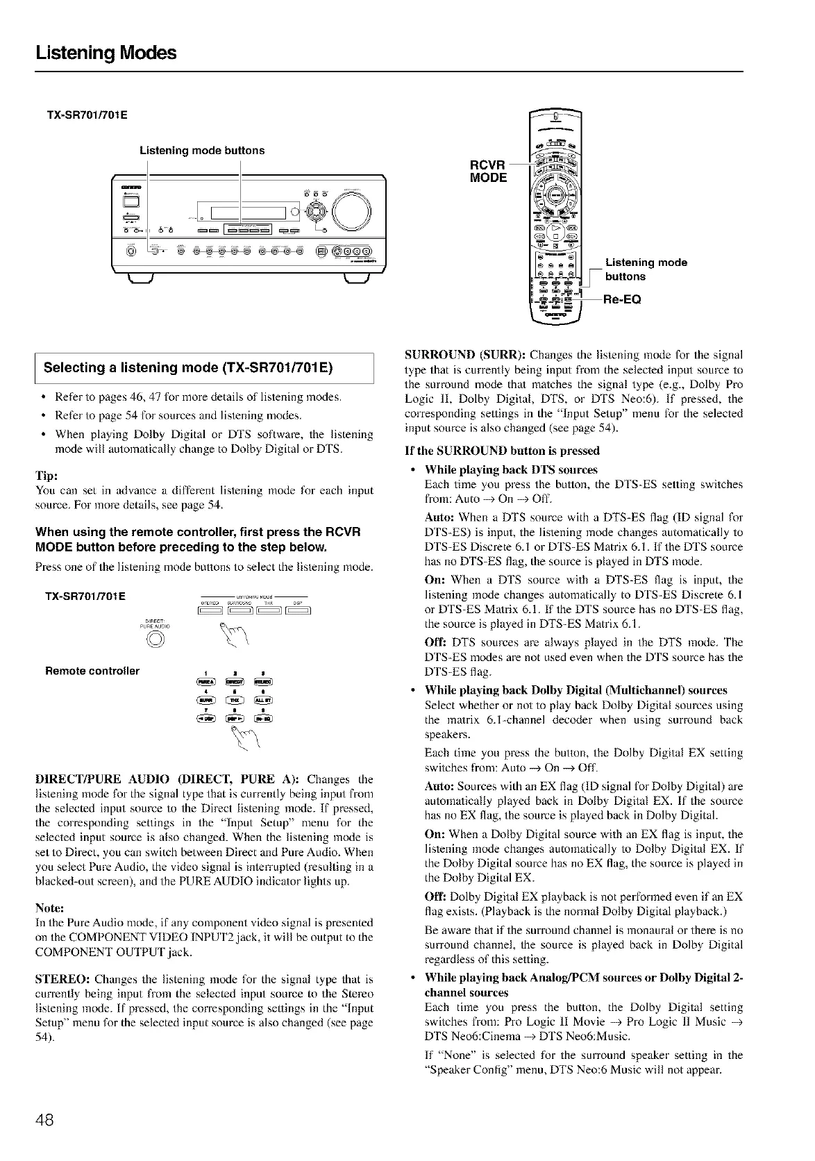 • Refer to pages 46, 47 for lnore details of listening nlodes.