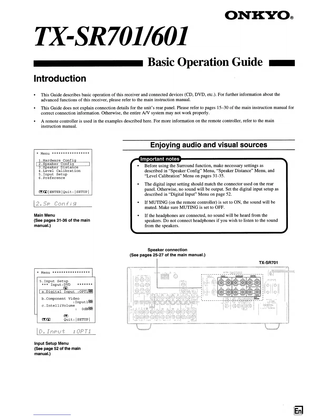 Onkyo TX-SR601E - Introduction; Enjoying audio and visual sources; Speaker connection