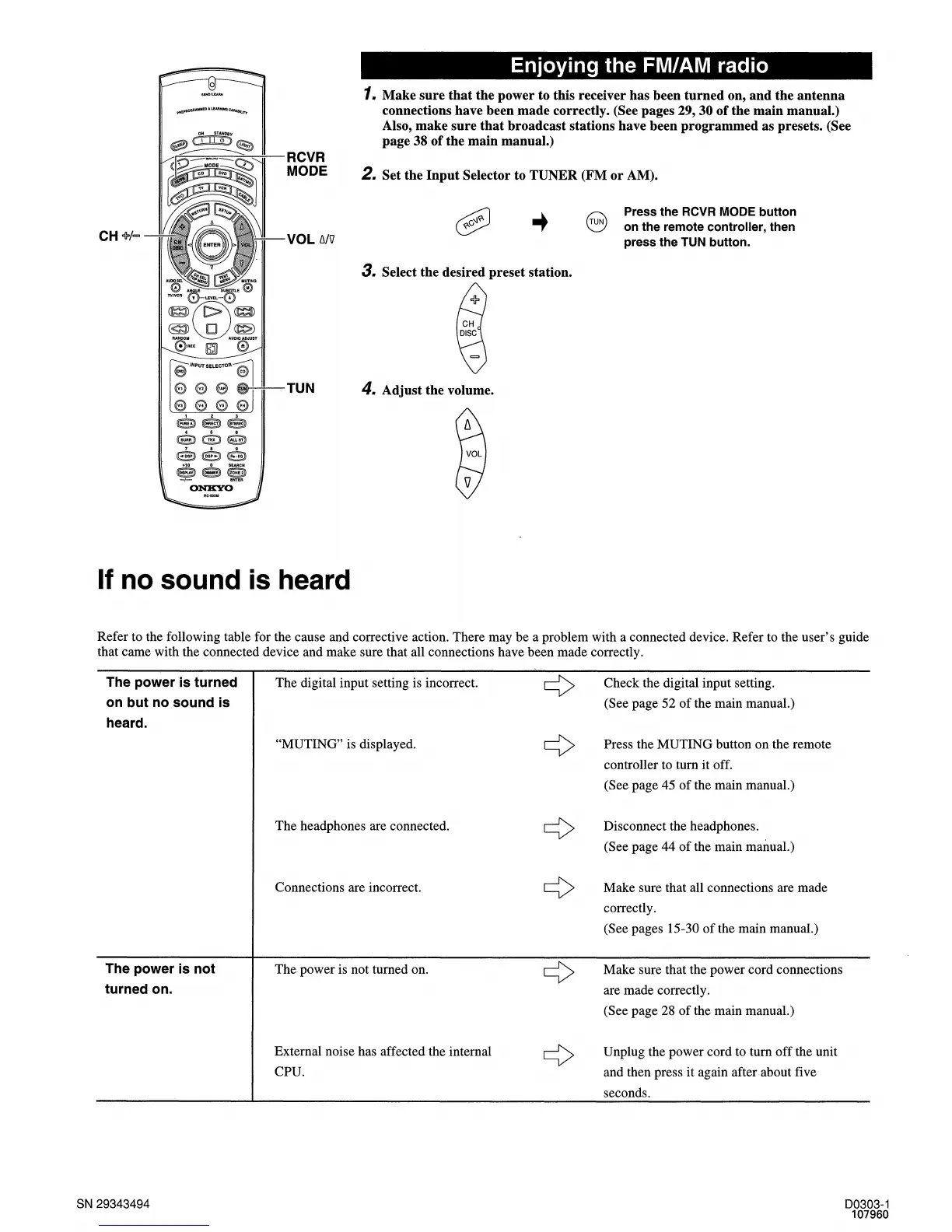Onkyo TX-SR601E - Enjoying the FM;AM radio; If no sound is heard