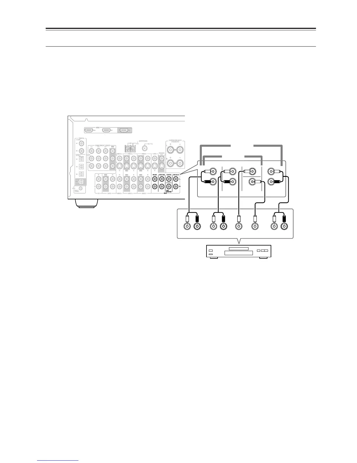 Use a multichannel analog audio cable, or several normal audio cables, to connect the AV receiver’s DVD IN FRONT