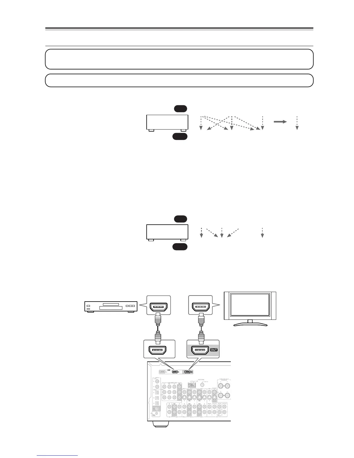 Step 1: Use HDMI cables to connect the AV receiver’s HDMI jacks to your HDMI-compatible DVD player, TV,