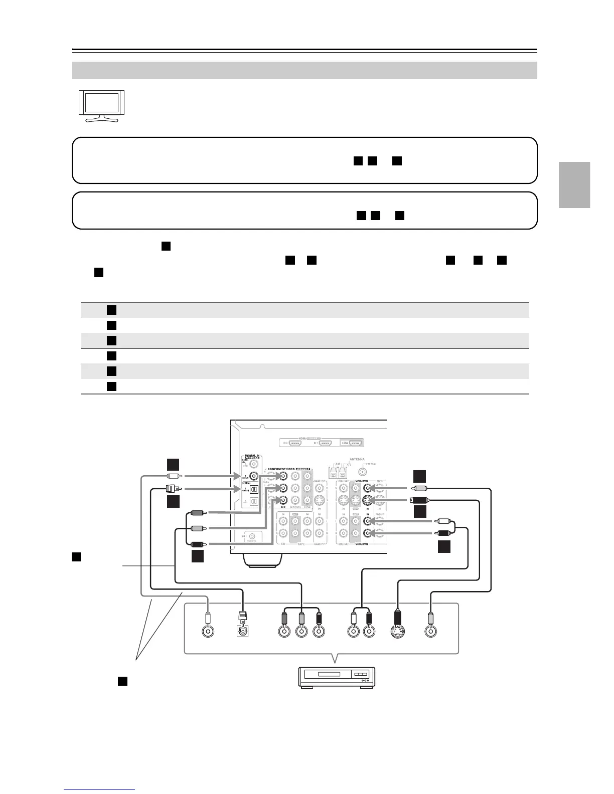 • To enjoy Dolby Digital and DTS, use connection or . (To listen in Zone 2 as well, use and , or and