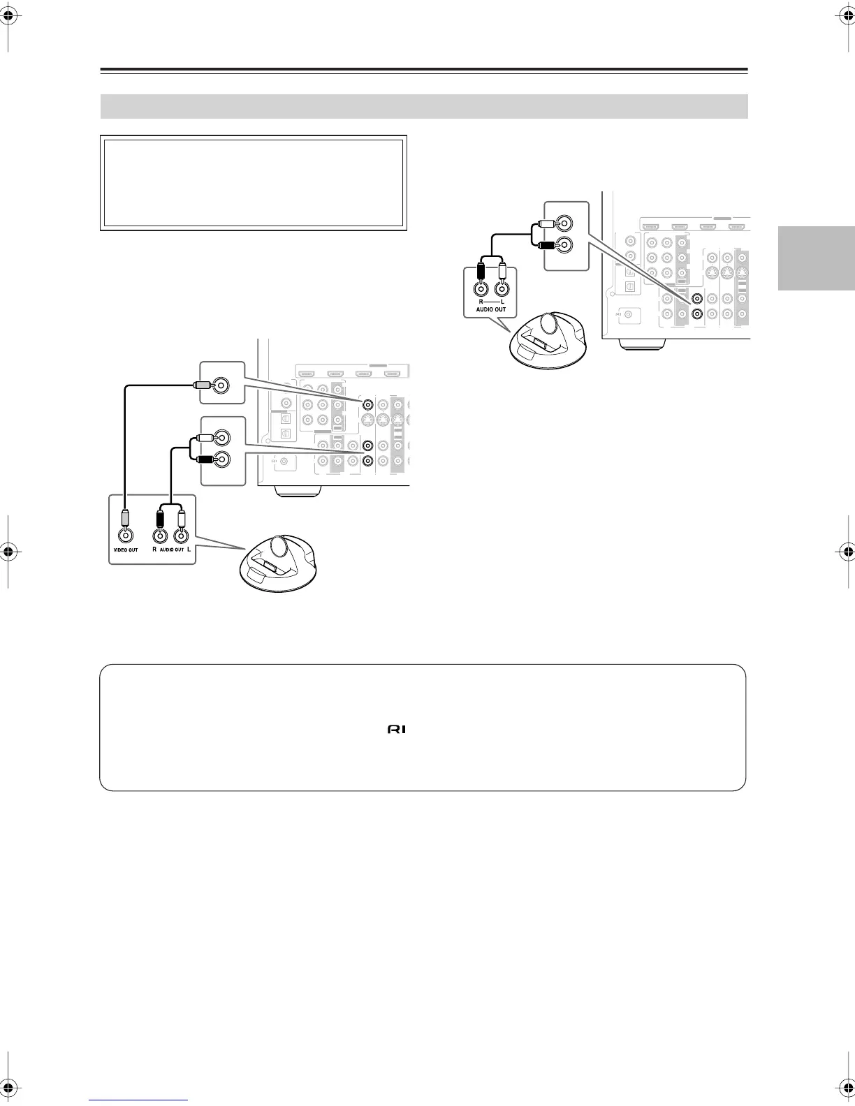 • Connect the RI Dock to the AV receiver with an cable (see page 36).