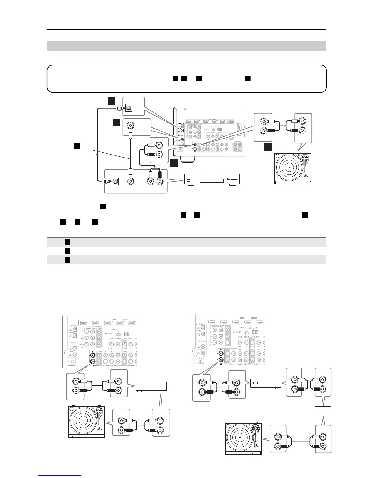 • To connect the CD player digitally, use connection or . (To record or listen in Zone 2 as well, use and
