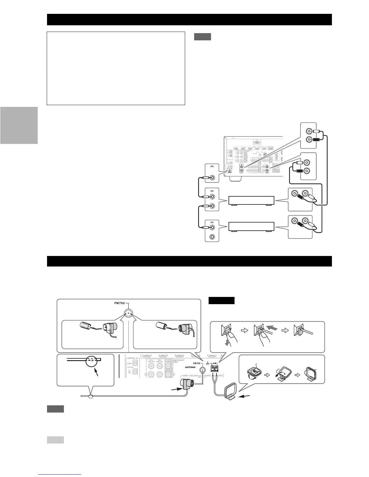 This section explains how to connect the supplied indoor FM antenna and AM loop antenna.