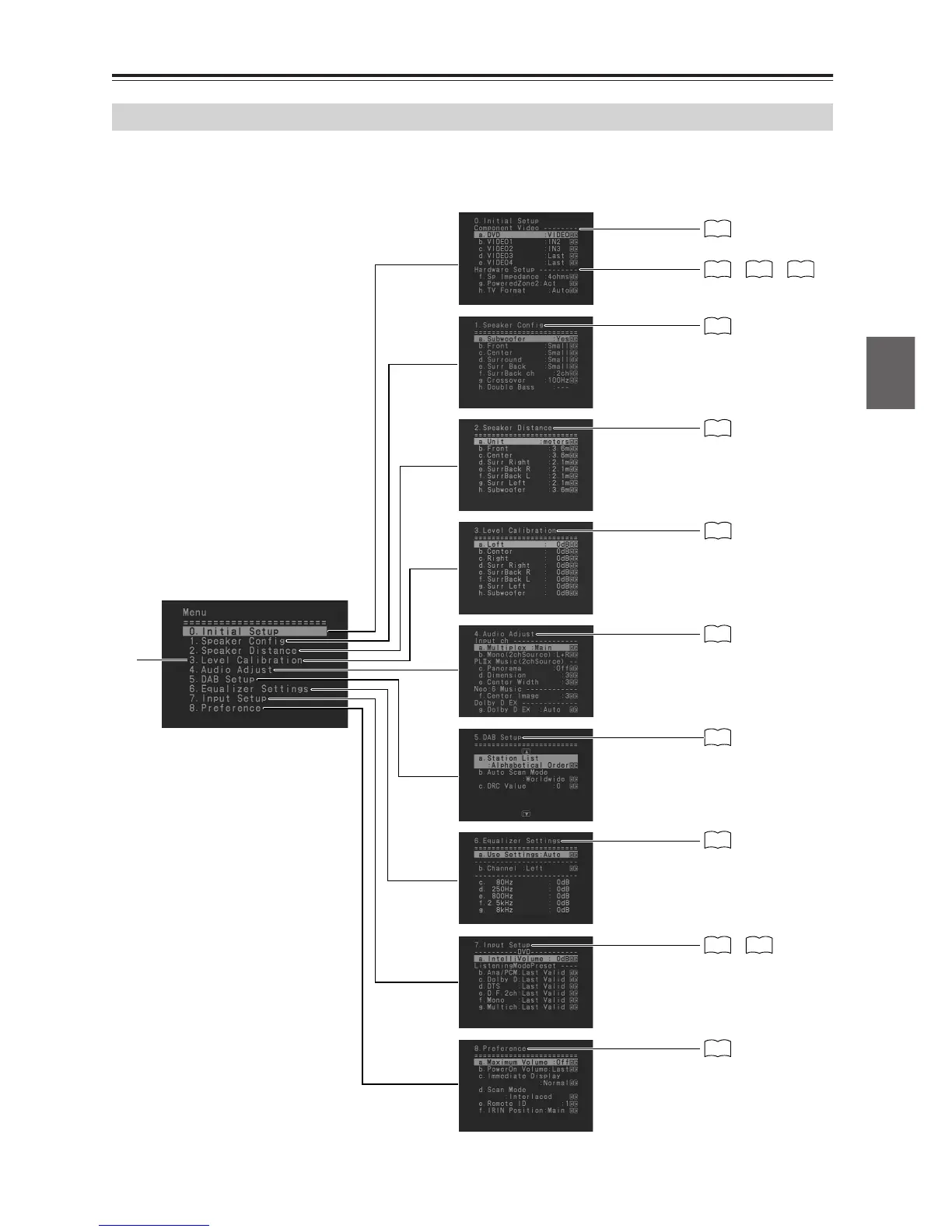 The AV receiver is configured using onscreen setup menus, which are displayed on the TV that’s connected to either of
