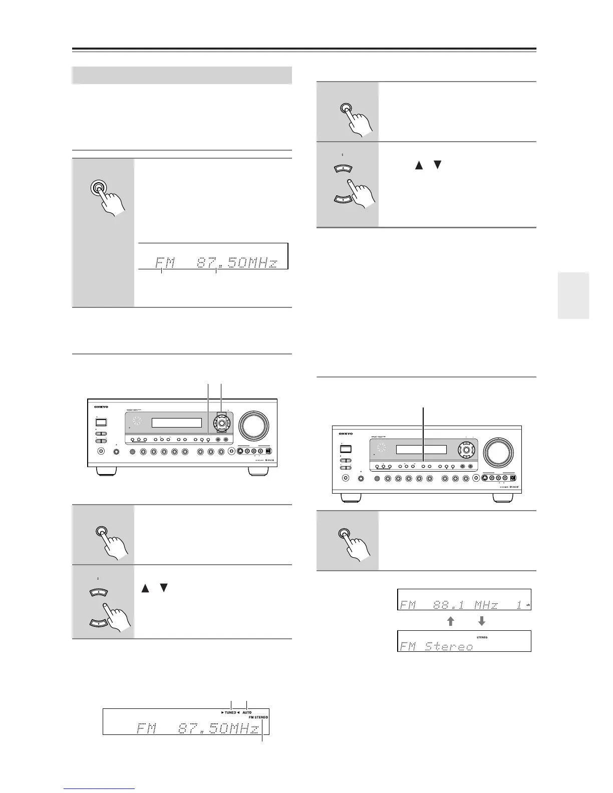 The TX-SR653E changes FM frequency in 0.05 MHz