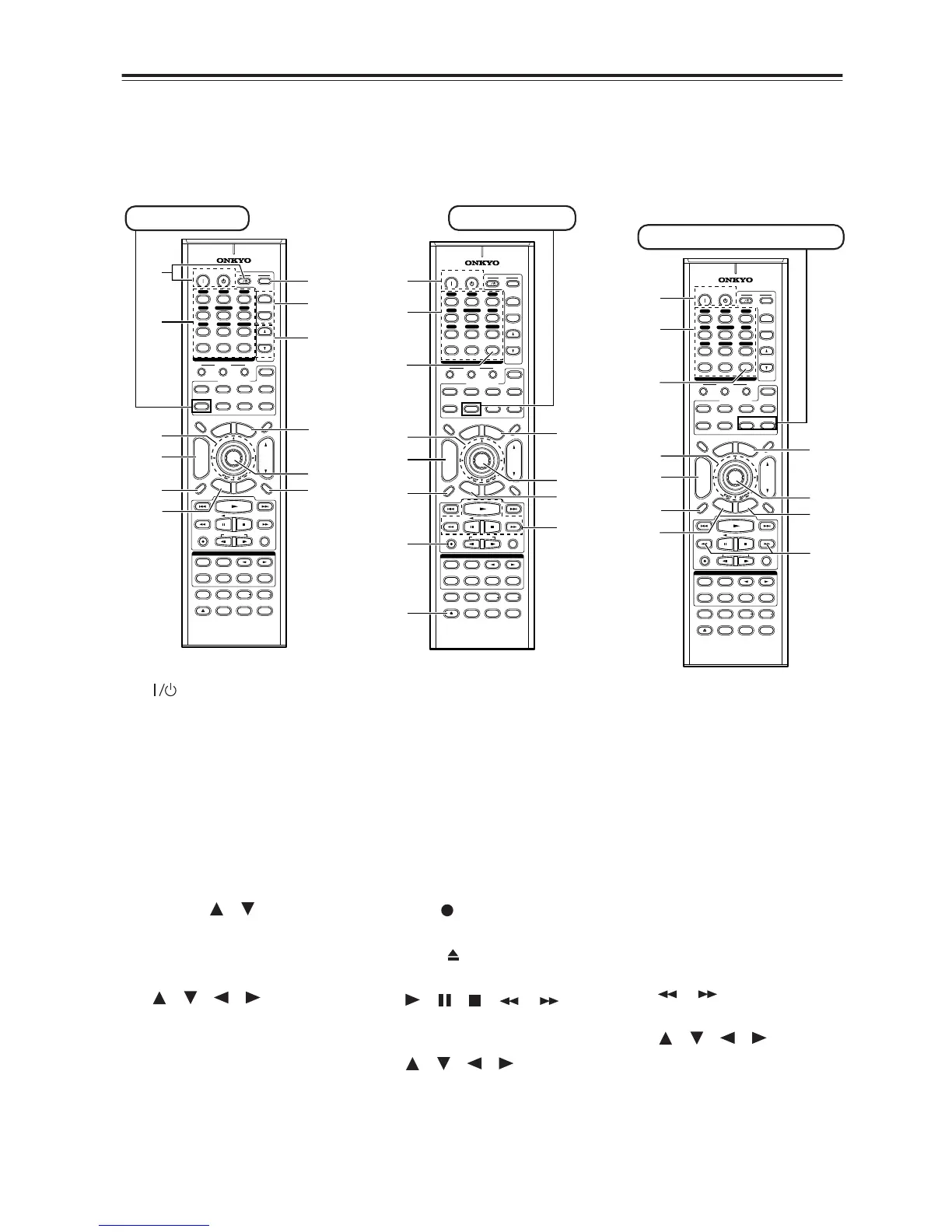 • To control another component, point the remote controller at it and use the buttons explained below. (You must