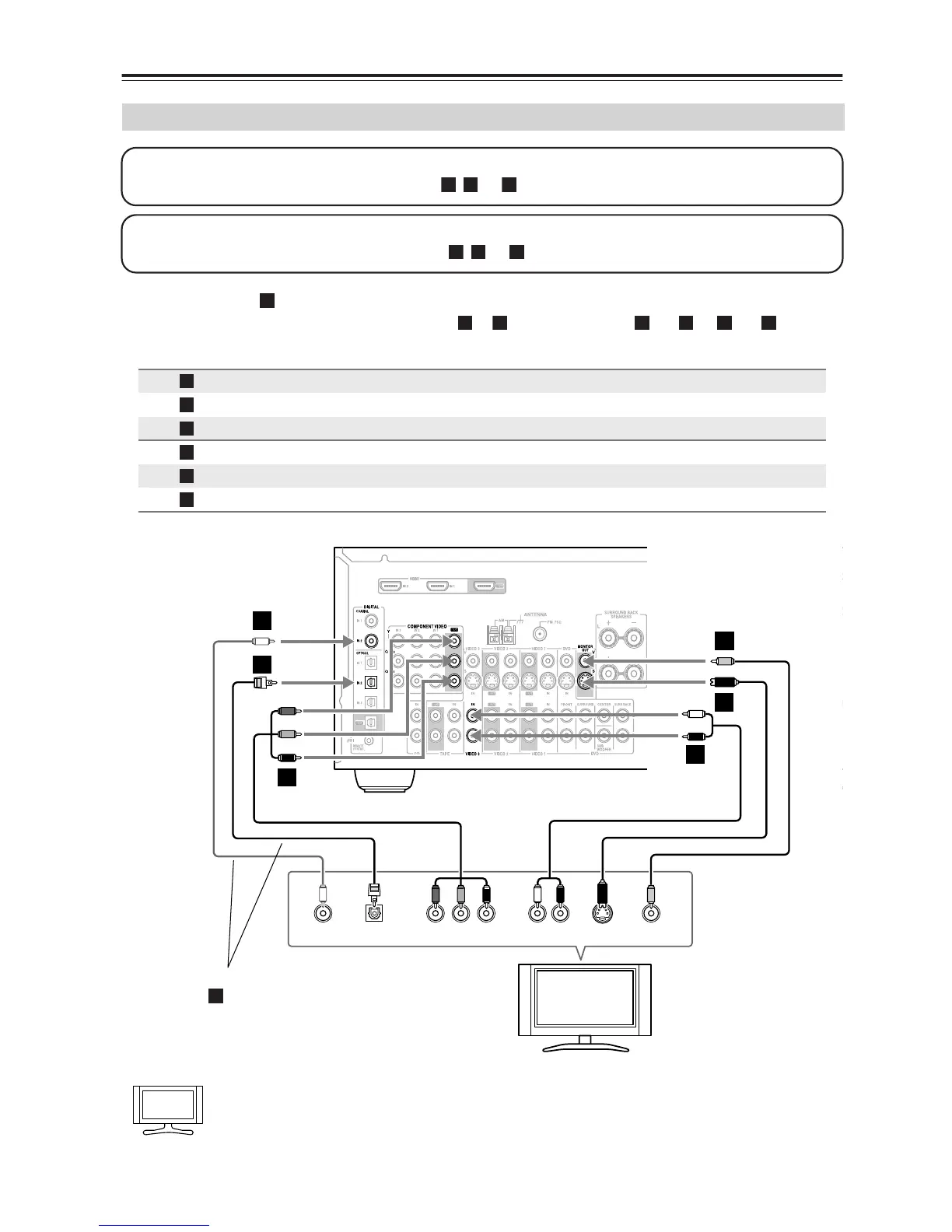• To enjoy Dolby Digital and DTS, use connection or . (For recording, use and , or and .)