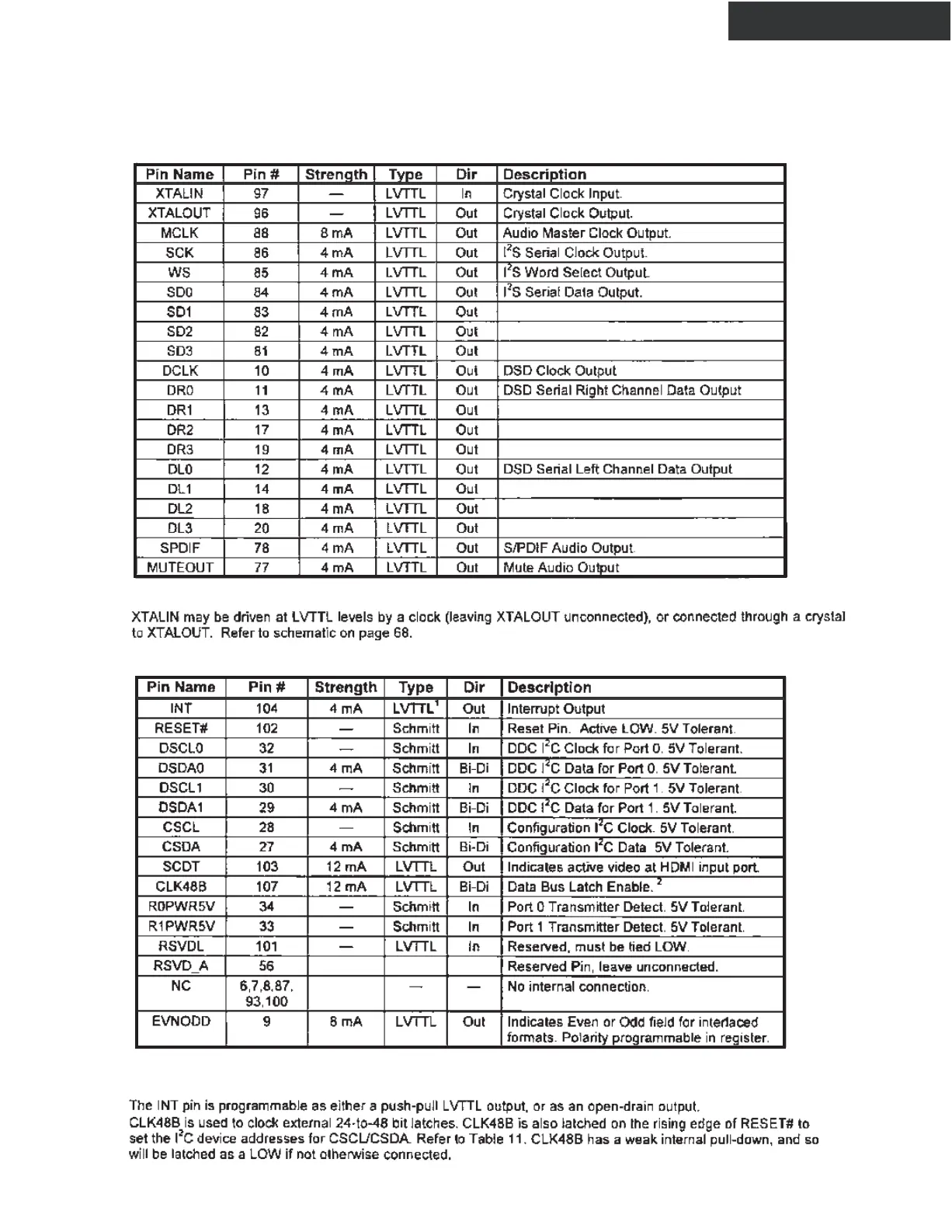 Onkyo TX-SR674E - IC Block Diagrams and Terminal Descriptions -53; Q8501: SiI9033 (HDMI Receiver) - Terminal Description (2;5) Digital Audio Output Pins; Terminal Description (3;5) Configuration;Programming Pins