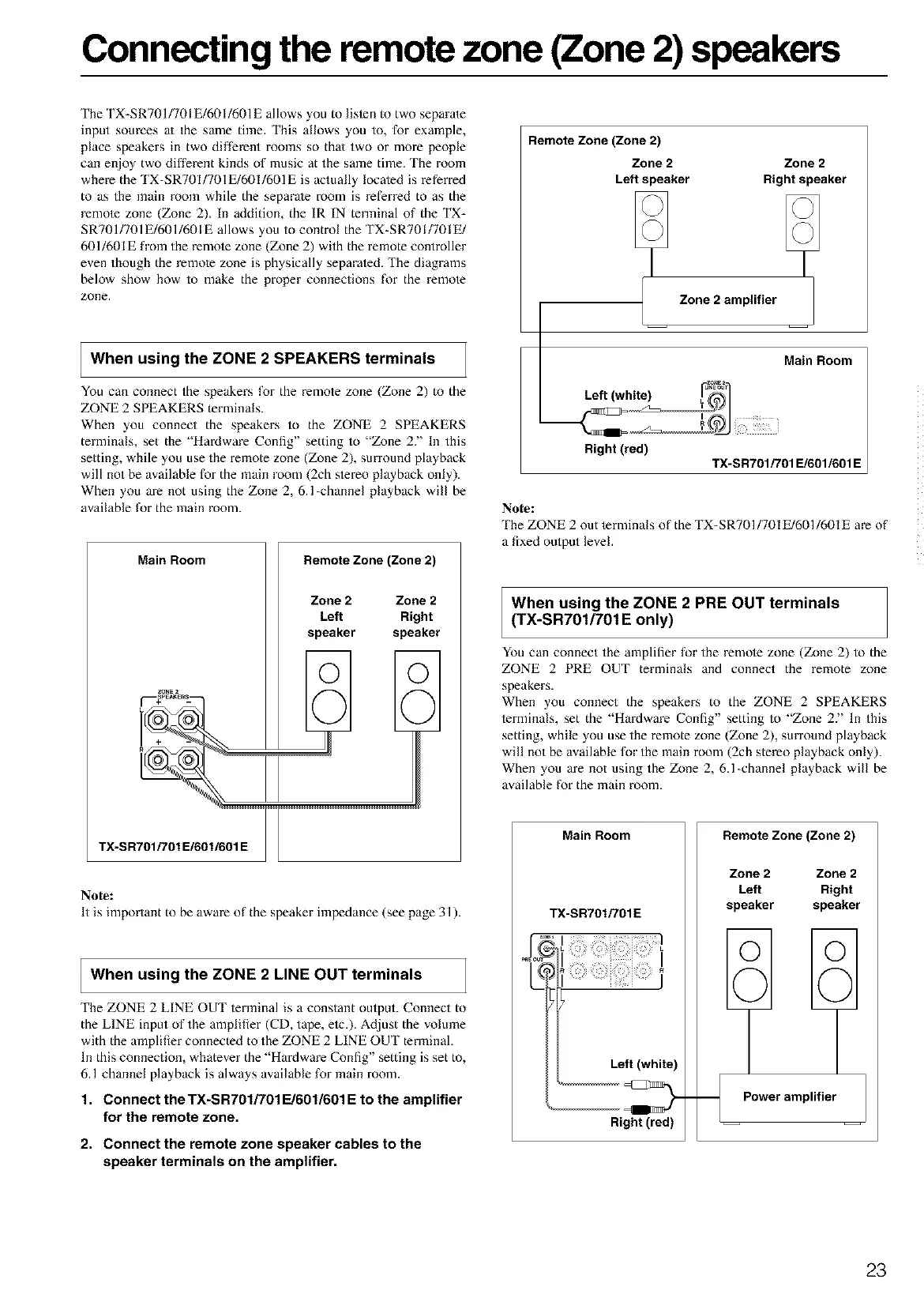 'Ihe ZONE 2 out lerminals of the TX-SR701/701E/601/601E are of