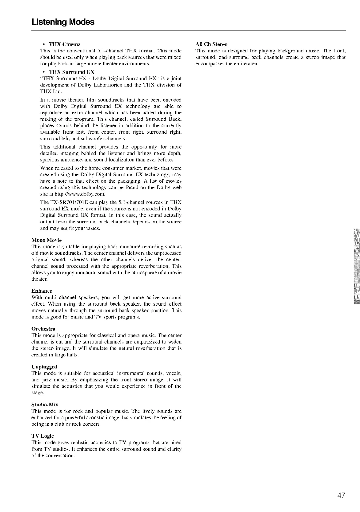The TX-SR701/701E can play the 5.l-channel sources in THX