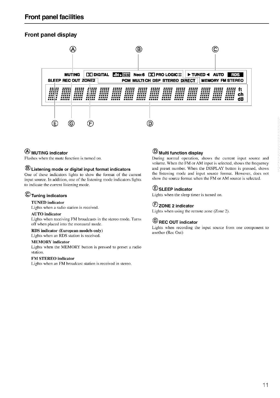 SLEEP REC OUT ZONE2 I PCM MULTI CH DSP STEREO DIRECT MEMORY FM STEREO