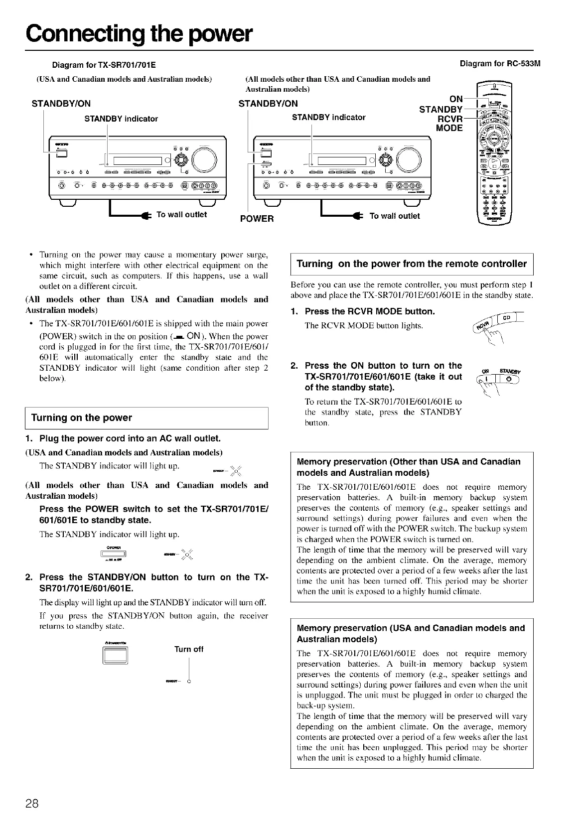 • The TX-SR701/701 E/601/601E is shipped with the main power