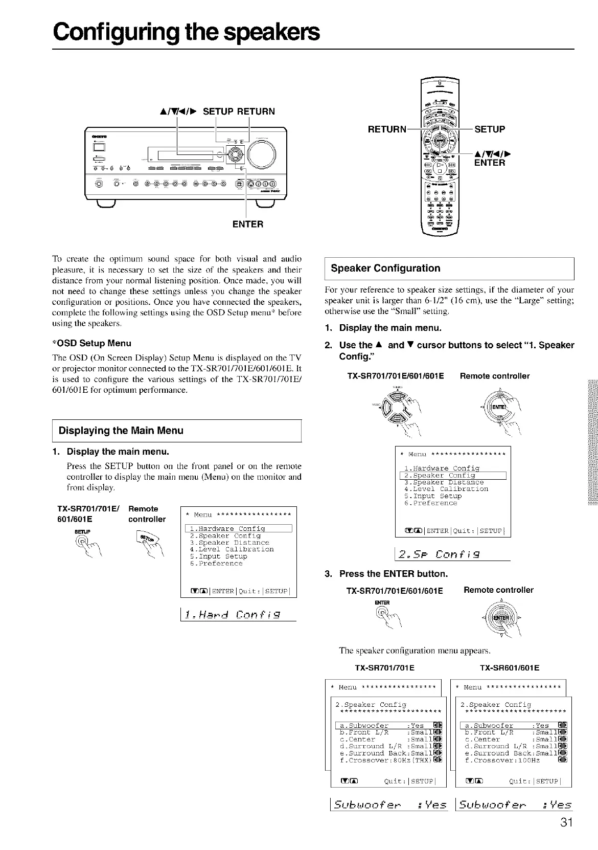 or projector monitor connected to the TX-SR701/701E/601/601E. It