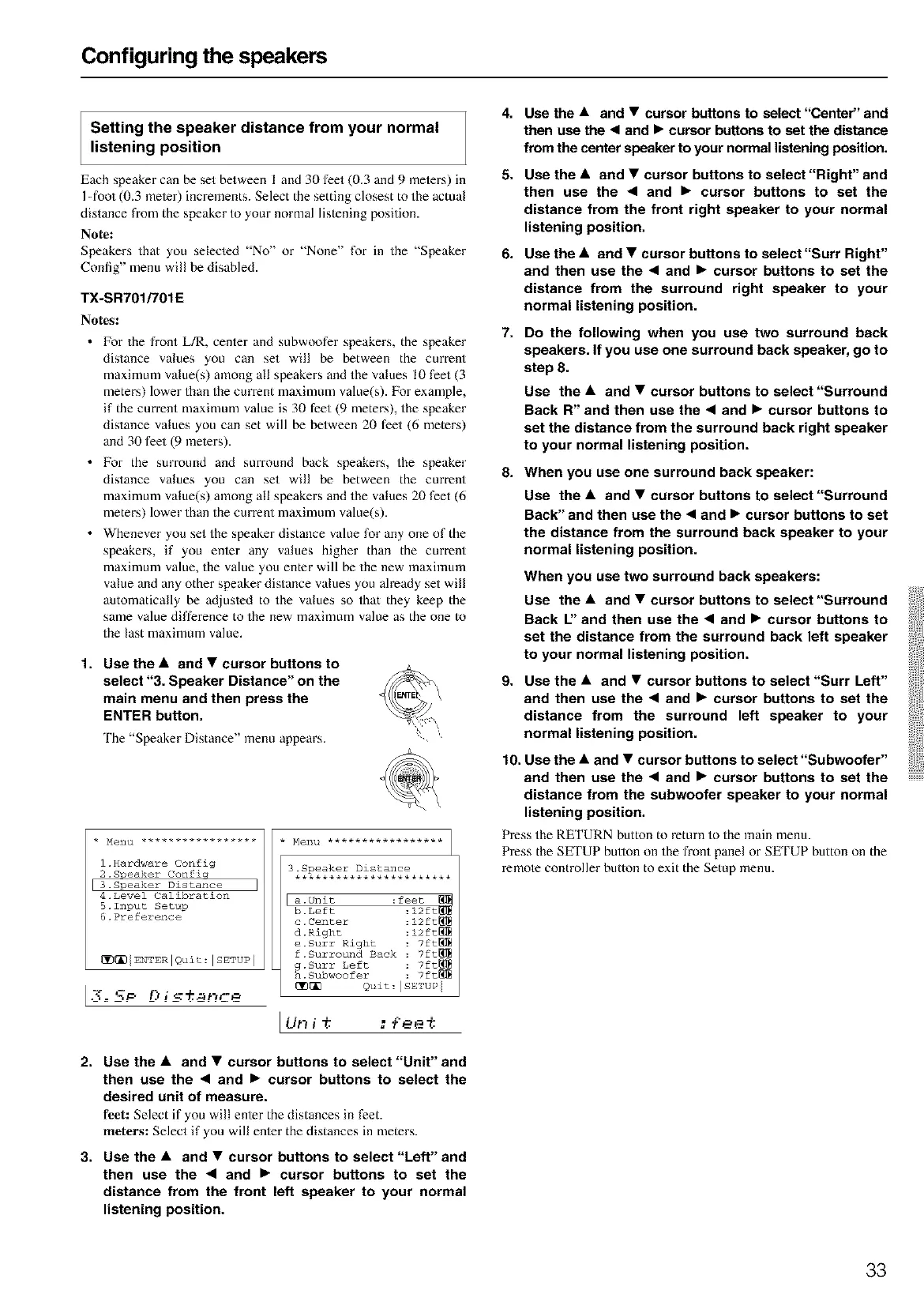 Each speaker can be set between I and 30 feet (0.3 and 9 meters) in