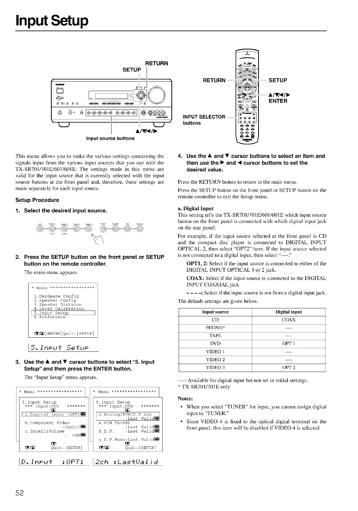 TX-SR701/701E/601/601E. The sellings made in this menu are