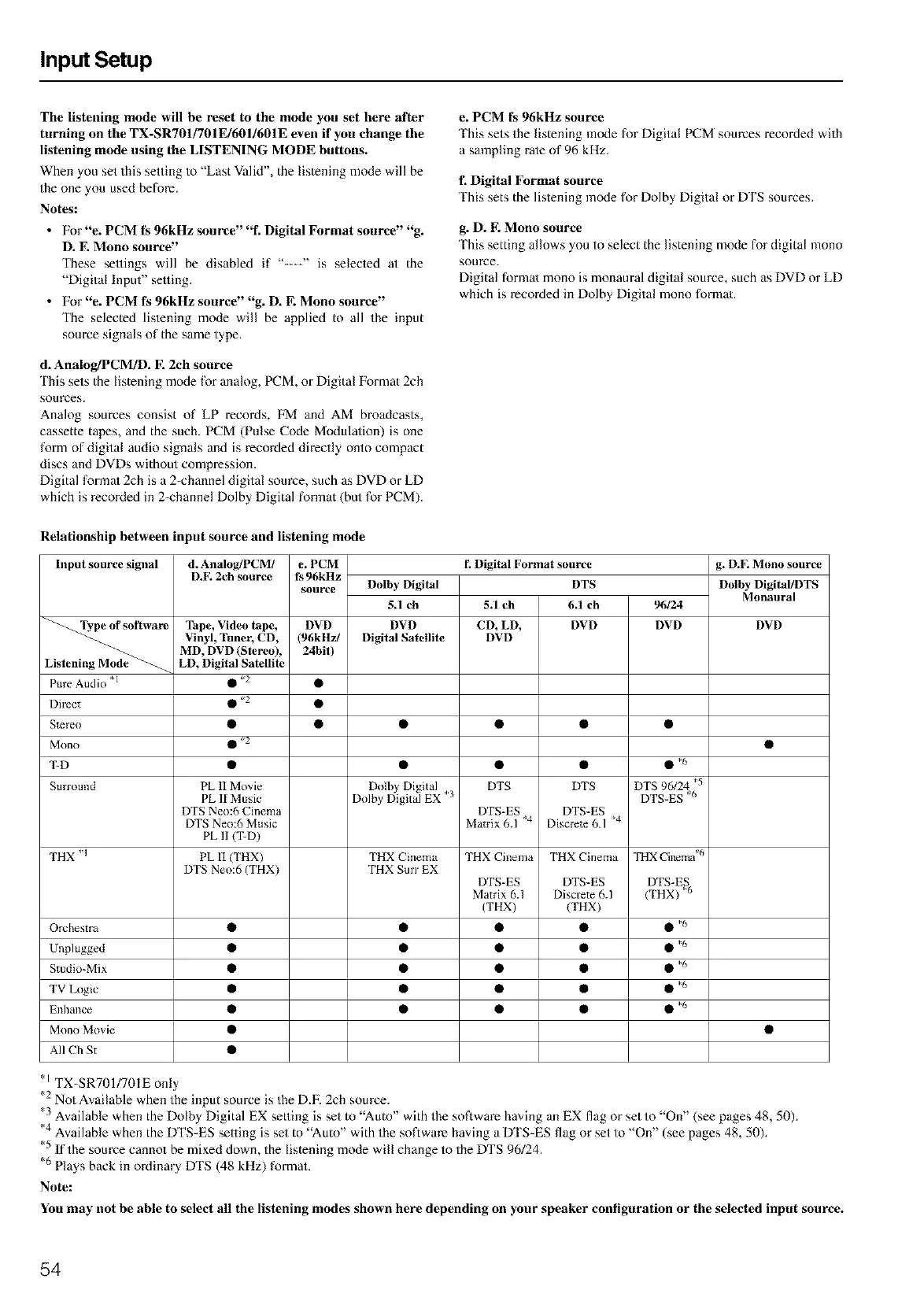 • For "e. PCM t_ 96kHz source" "f. Digital Format source" "g.