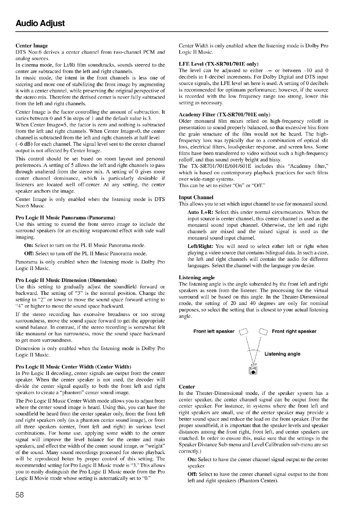 listeners are located well off-center. At any setting, the center