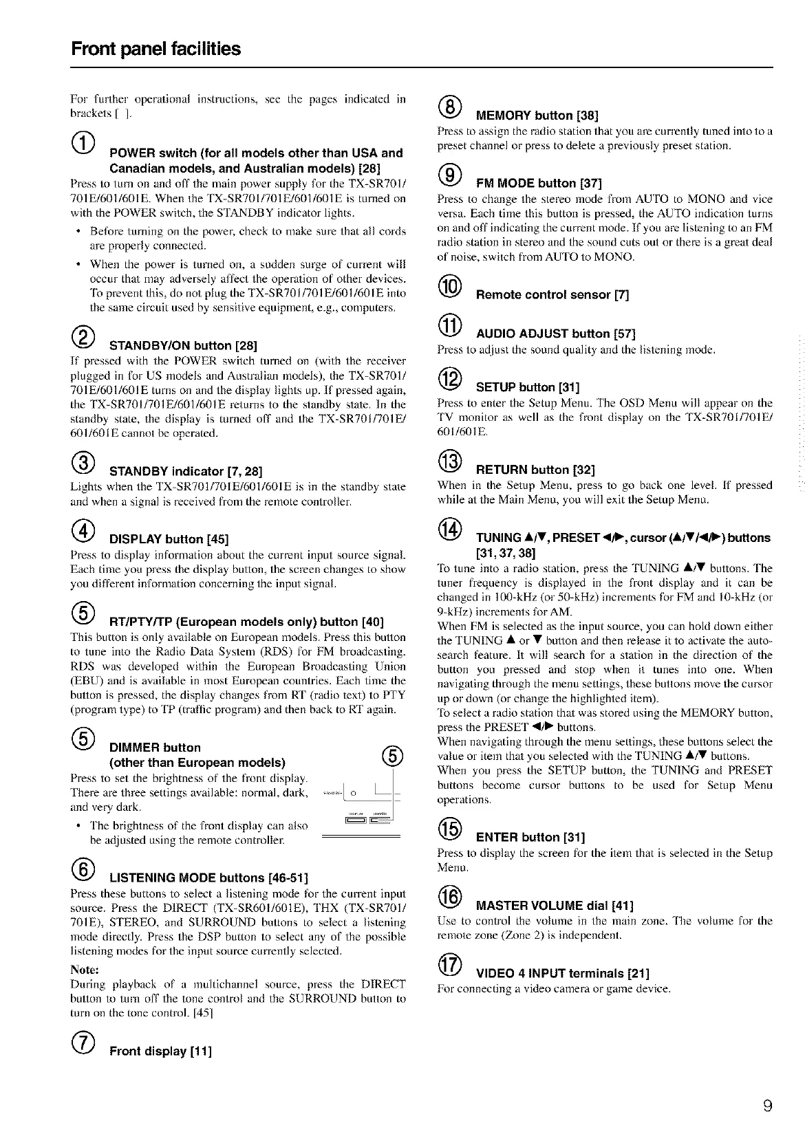701E/601/601E. When the TX-SR7OI/701E/601/601E is turned on