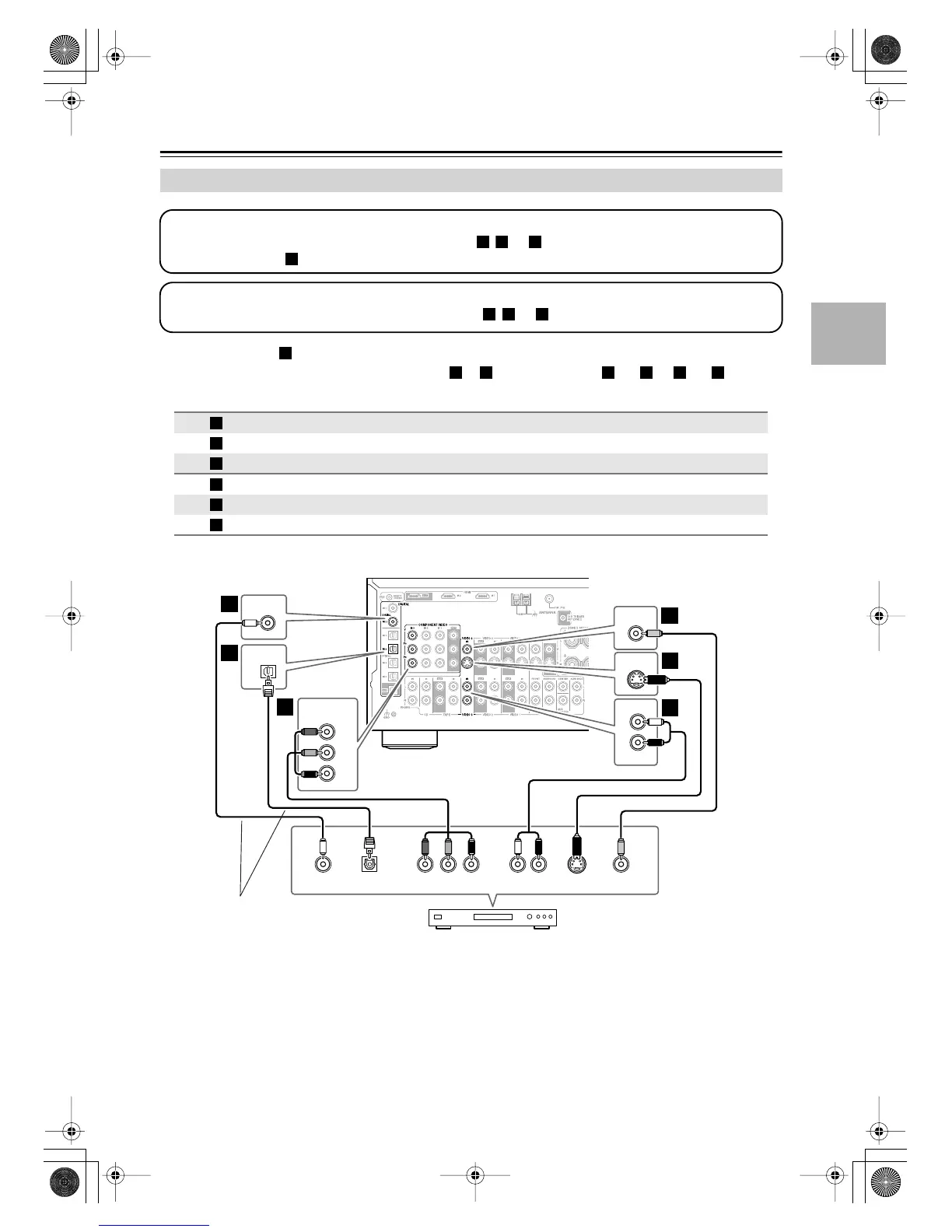 •With connection , you can listen to and record audio from the video source and listen in Zone 2.