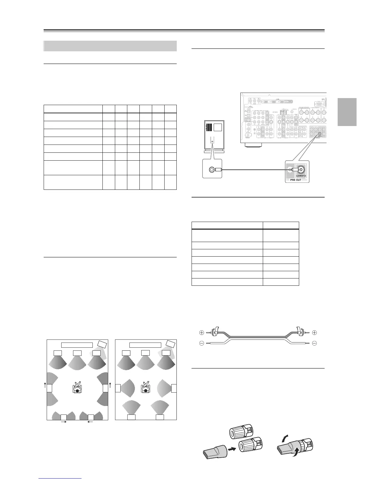 * Si sólo utiliza un altavoz envolvente posterior, conéctelo a los